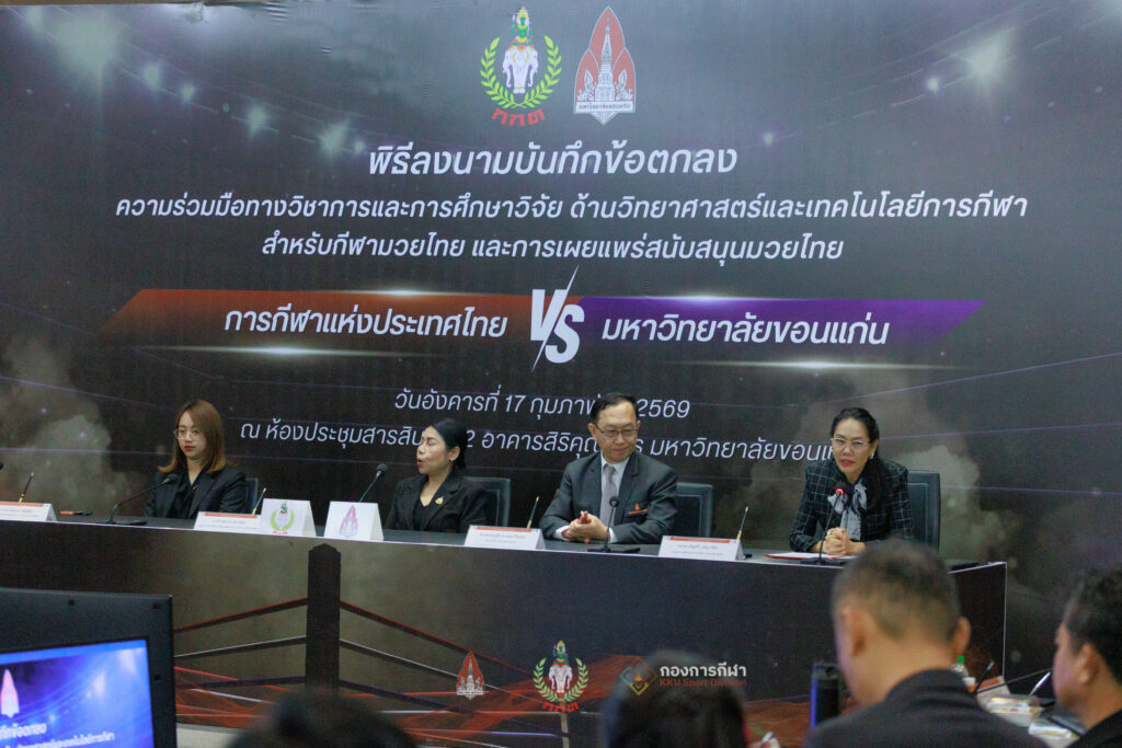 มุ่งพัฒนา “มวยไทย” บนฐานองค์ความรู้และนวัตกรรม อธิการบดีมหาวิทยาลัยขอนแก่นกล่าวว่า มหาวิทยาลัยให้ความสำคัญกับกีฬาในฐานะกลไกการพัฒนาคน สุขภาวะ และองค์ความรู้ โดยเฉพาะการนำวิทยาศาสตร์การกีฬา เทคโนโลยี และนวัตกรรม มาประยุกต์ใช้กับการพัฒนานักกีฬา ผู้ฝึกสอน และระบบการฝึกซ้อมอย่างเป็นระบบ พร้อมผลักดันมวยไทยให้ก้าวสู่มาตรฐานสากลด้วยฐานข้อมูลเชิงประจักษ์และงานวิจัยที่เข้มแข็ง ด้านรองผู้ว่าการฝ่ายกีฬาอาชีพและกีฬามวย การกีฬาแห่งประเทศไทย กล่าวถึงเจตนารมณ์ความร่วมมือว่า มวยไทยเป็นทั้งมรดกทางวัฒนธรรมและกีฬาอาชีพที่มีศักยภาพสูงในระดับนานาชาติ การยกระดับมวยไทยอย่างยั่งยืนจำเป็นต้องอาศัยความร่วมมือกับสถาบันการศึกษาที่มีศักยภาพด้านวิทยาศาสตร์การกีฬา เพื่อพัฒนาศักยภาพนักมวย บุคลากร และระบบการจัดการอย่างเป็นระบบ สาระสำคัญของความร่วมมือ 5 ด้าน บันทึกข้อตกลงฉบับนี้ มีระยะเวลา 3 ปี มุ่งเน้นความร่วมมือใน 5 ประเด็นหลัก ได้แก่ การส่งเสริมความร่วมมือด้านวิชาการ การศึกษา และการวิจัยที่เกี่ยวข้องกับกีฬามวยไทย การพัฒนาศักยภาพบุคลากรด้านวิทยาศาสตร์การกีฬา ผู้ฝึกสอน และนักกีฬา การจัดกิจกรรมทางวิชาการ การประชุม สัมมนา และเวทีแลกเปลี่ยนองค์ความรู้ทั้งในระดับประเทศและนานาชาติ การส่งเสริมสุขภาพและสมรรถภาพทางกายของนักมวยและประชาชนด้วยหลักวิทยาศาสตร์การกีฬา การเผยแพร่มวยไทยในฐานะศิลปวัฒนธรรมและกีฬาที่มีศักยภาพของประเทศ ภายใต้กรอบความร่วมมือนี้ การกีฬาแห่งประเทศไทยจะสนับสนุนด้านสถานที่ อุปกรณ์ และบุคลากรทางการกีฬา ขณะที่มหาวิทยาลัยขอนแก่นจะสนับสนุนองค์ความรู้ งานวิจัย